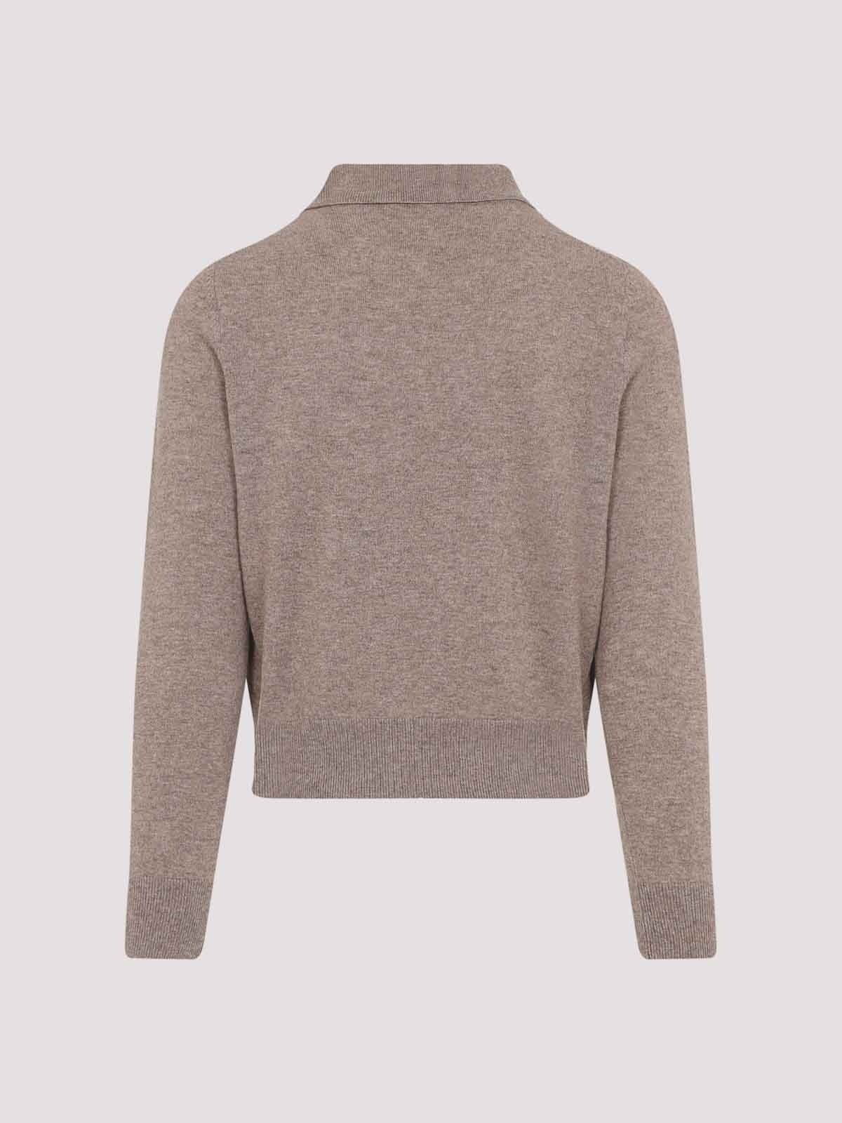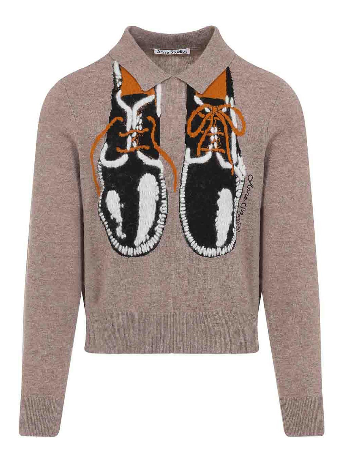 Acne studios beige sweater crafted from beige polo collar jacquard klastron shoes long sleeves ribbed edges straight hem