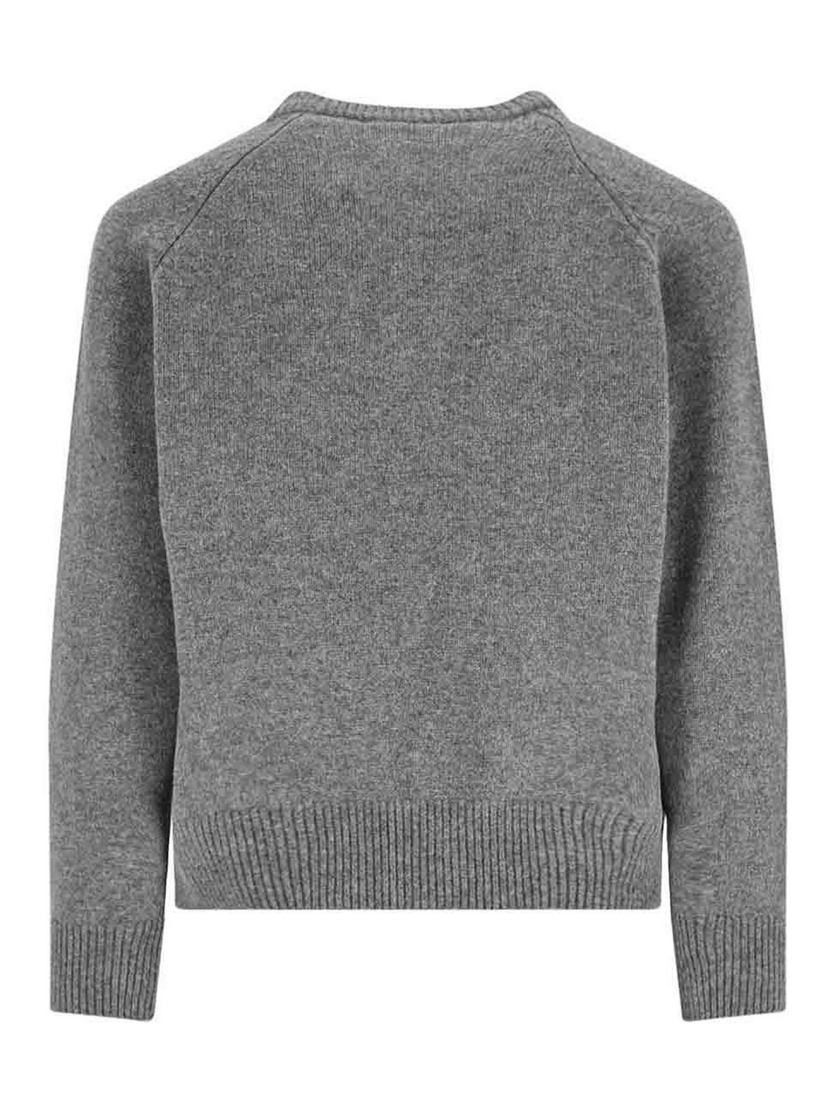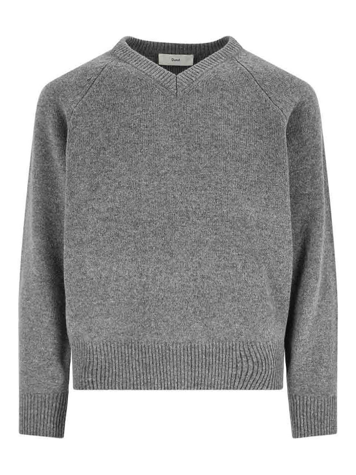 Dunts wool sweater, grey, v-neck, long sleeves, ribbed finishes, straight hem.