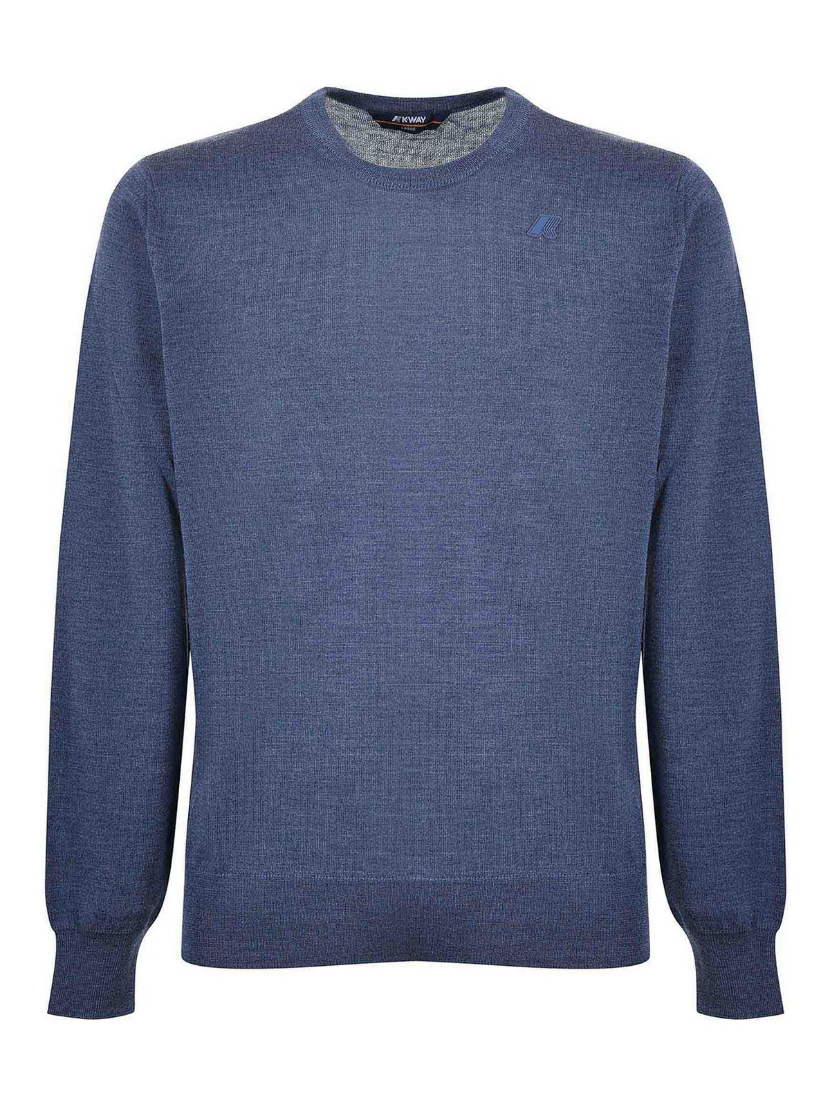K-way wool sweater. crew neck. long sleeves. ribbed cuffs and hem. matching rubberized logo on the chest. regular fit. size (pictured) m 100% wool