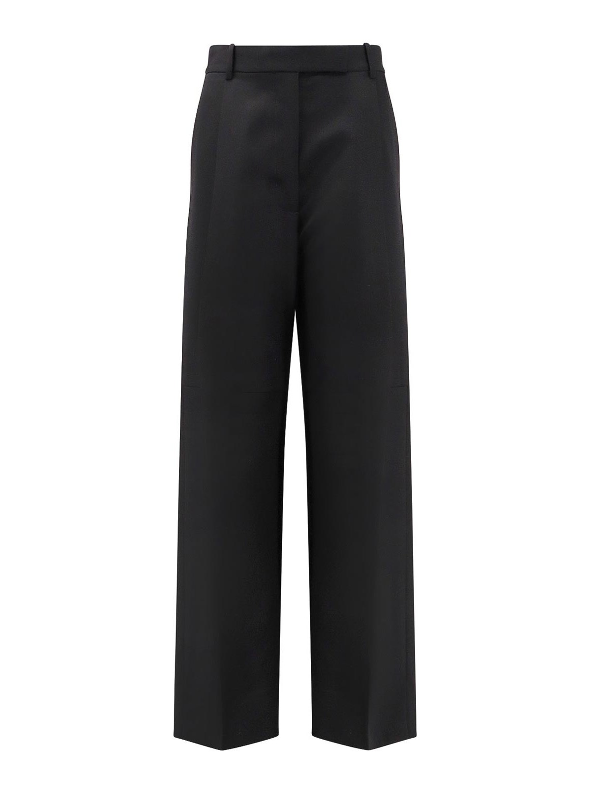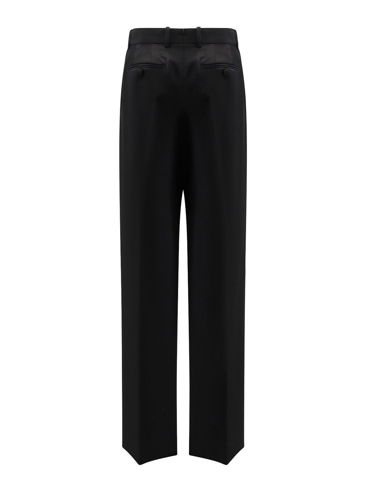 Hook, button and zip closure america pockets on the front two welt pockets with button on the back made in Italy 100% wool