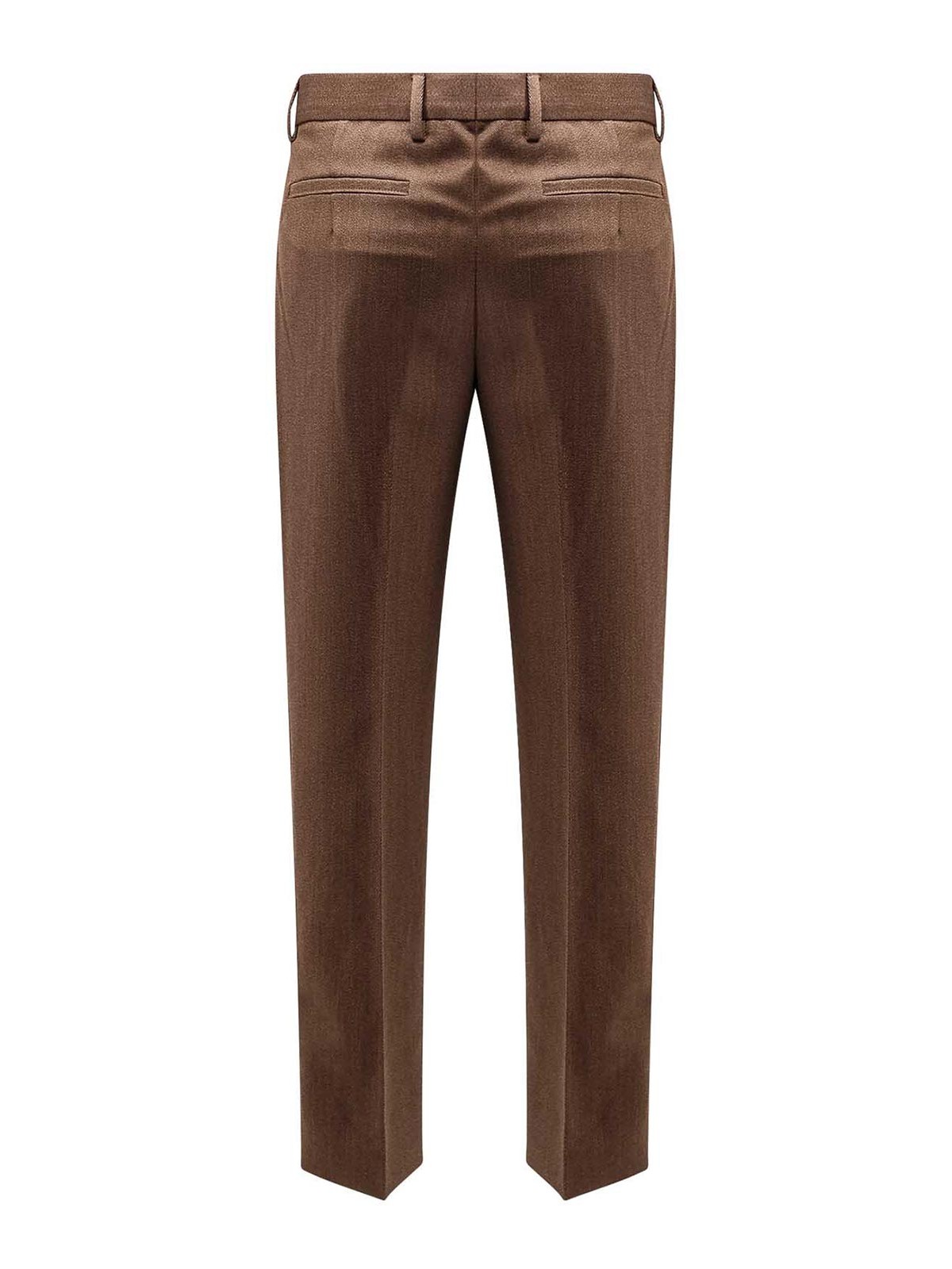 Button, hook and zip closure america pockets on the front welt pockets on the back pleated fit 100% wool