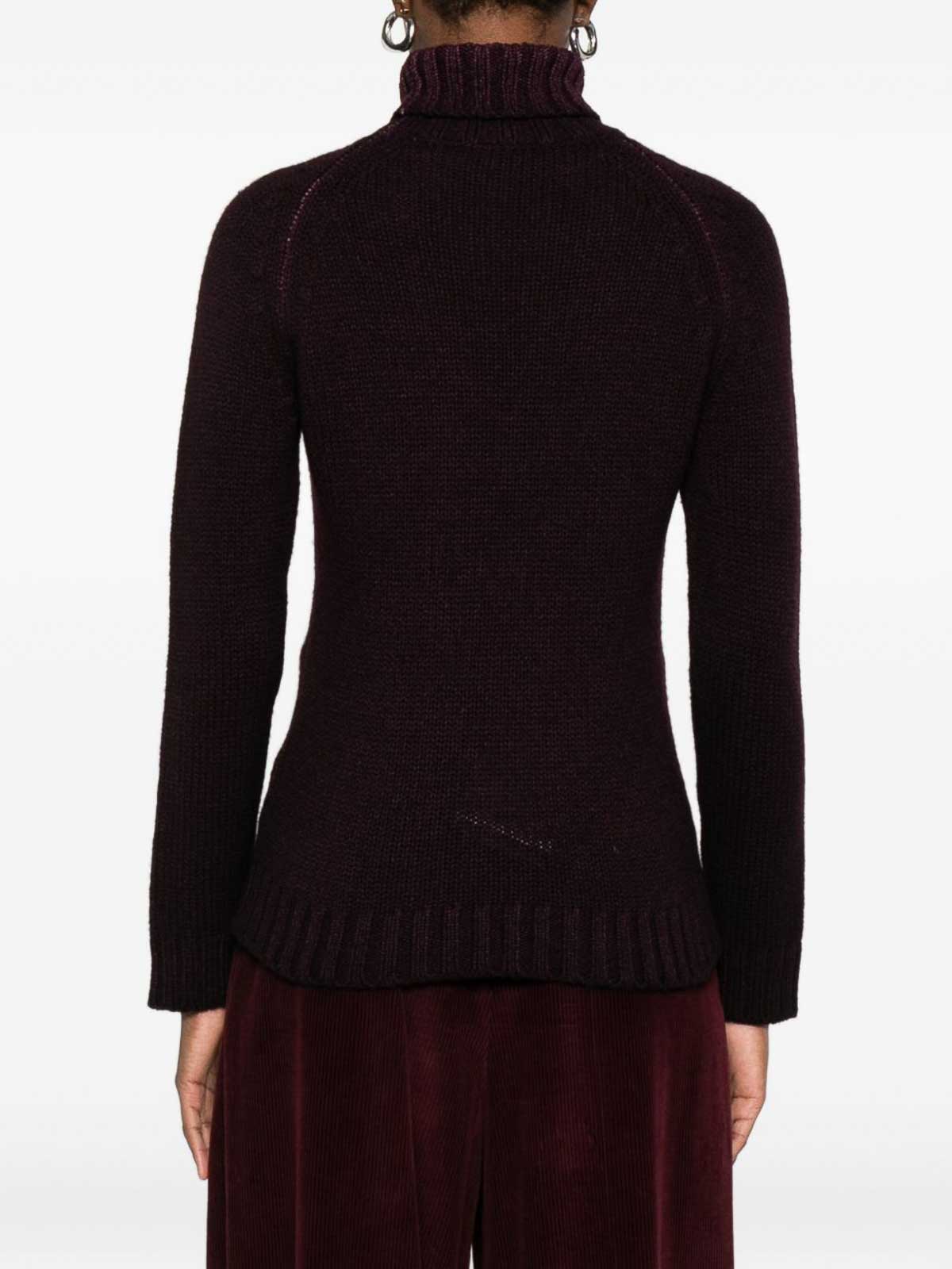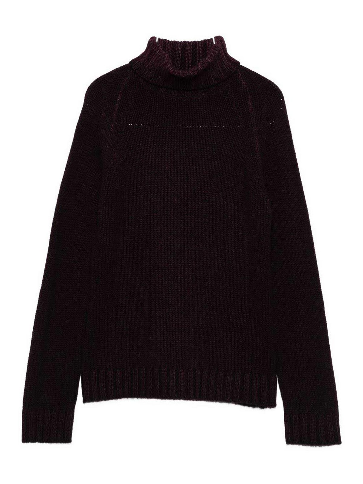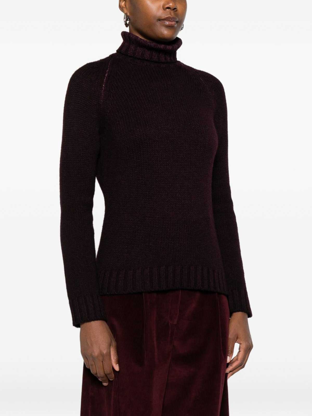 Burgundy turtleneck neckline ribbed knit long sleeves raglan sleeves straight hem
