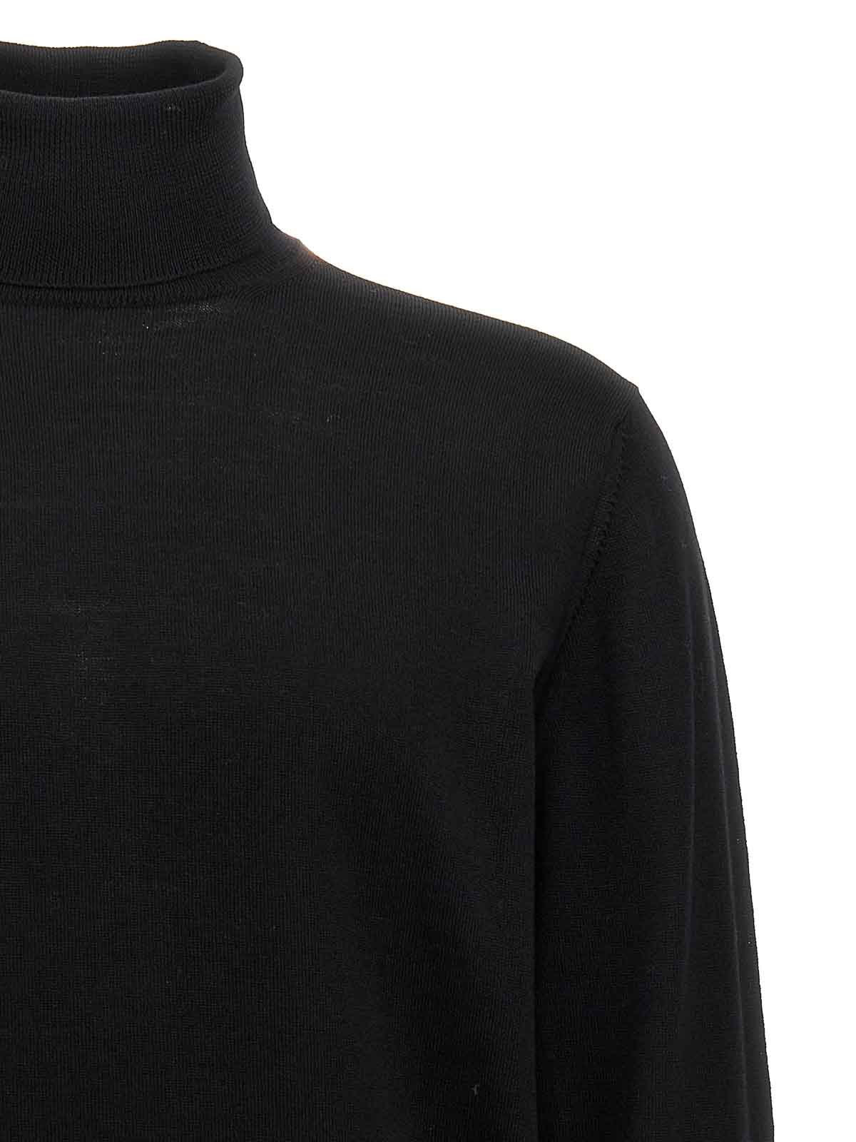 Merino wool turtleneck sweater, high neck, long cuffed sleeves.