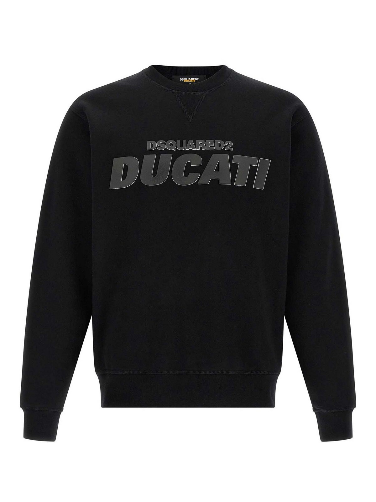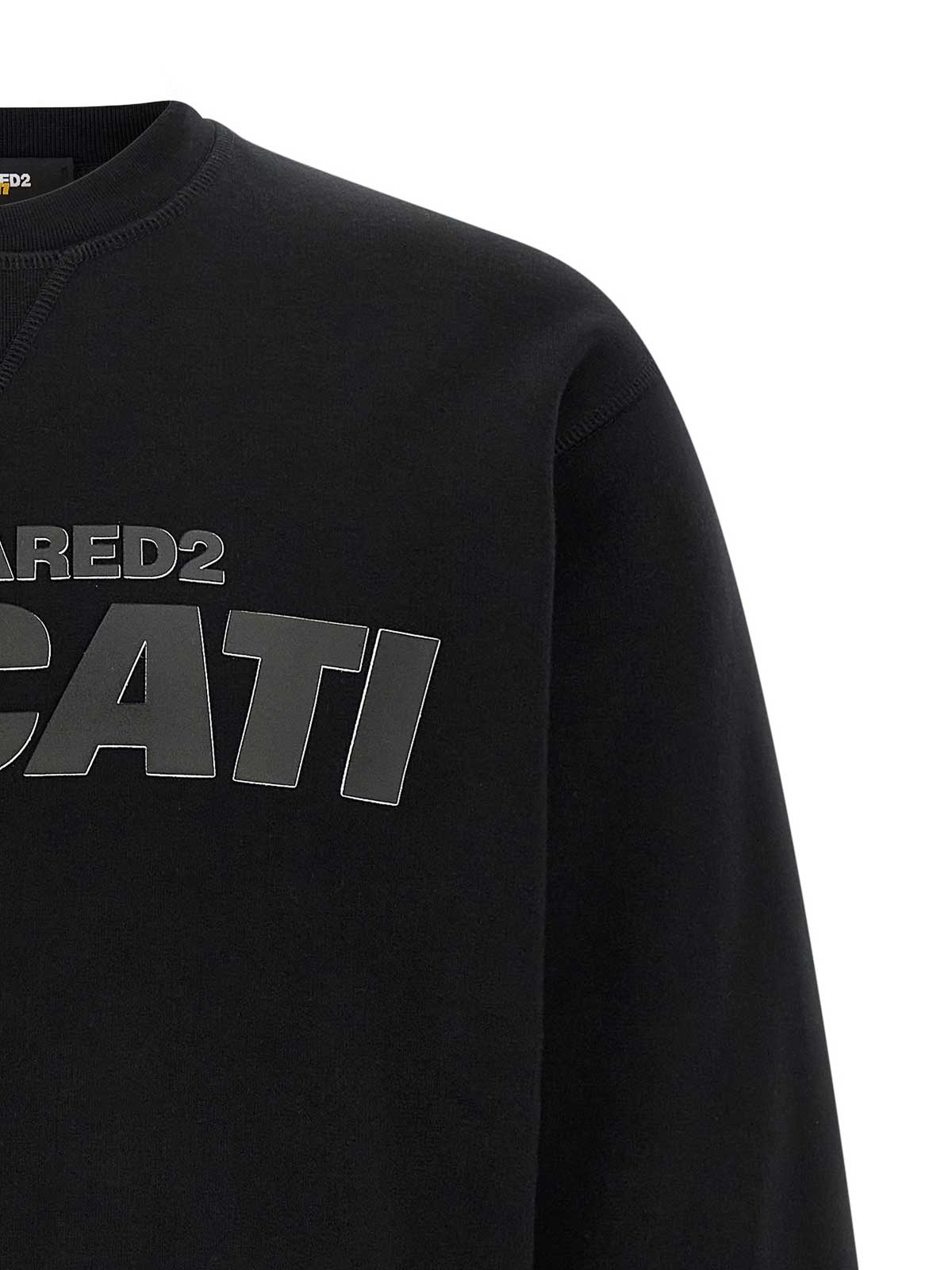 Dsquared2 x ducati capsule sweatshirt in fleece cotton, front 3d logo, crew neck, long cuffed sleeves.